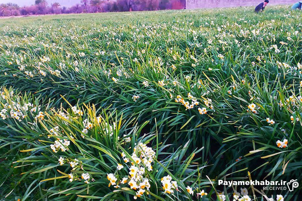 از میانه این همه زیبایی خدادادی، نرگسزاری را یافتیم و به آن پای نهادیم که مزرعهای بود به دستان خانوادهای جان گرفته... مزرعهای که به گفته بانوی آن، با کمآبی تشنگی از آن گرفتهاند و با این همه، نیمی از کشت پیازهای نرگس سالیانهشان، آب نخوردهاند و از این رو، با بارانهایی که به تازگی بر زمین مرده نشسته، نیم دیگر هم سر از خاک برداشتهاند و معلوم نیست که امسال بتوانند از آن برداشت کنند. پیازهای نرگسی که از گلهدار به این زمین آورده شدهاند، رنگ و بوی نرگسزار گره کازرون میدهد.
